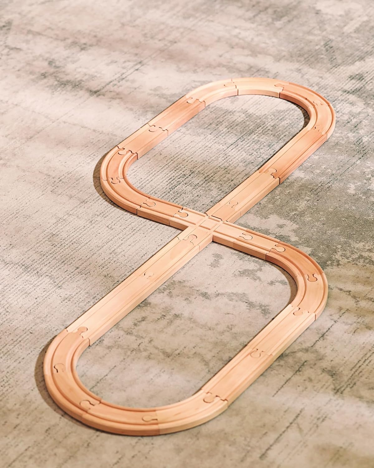 Este producto cuenta con 24 piezas de vías de tren de madera.